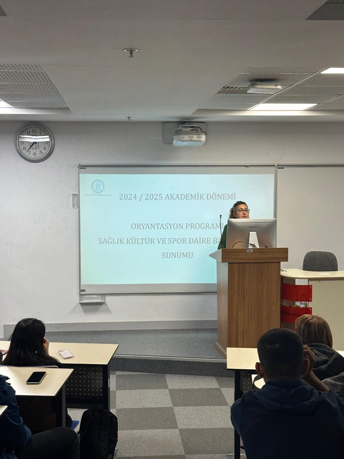 2024 - 2025 Eğitim Öğretim yılında AYBÜ Diş Hekimliği Fakültesine başlayan 1. Sınıf öğrencilerine oryantasyon programı gerçekleştirildi. Programda Fakülte Dekan Vekili Prof. Dr. Filiz AYKENT' in açılış konuşmasının ardından 1.Sınıf koordinatörü Doç. Dr. Mustafa GÜNGÖRMÜŞ ile AYBÜ Öğrenci İşleri Daire Başkanlığı, Sağlık Kültür Spor Daire Başkanlığı ve Kütüphane Dökümantasyon Daire Başkanlığı temsilcileri bilgilendirme konuşmalarını gerçekleştirdiler.
