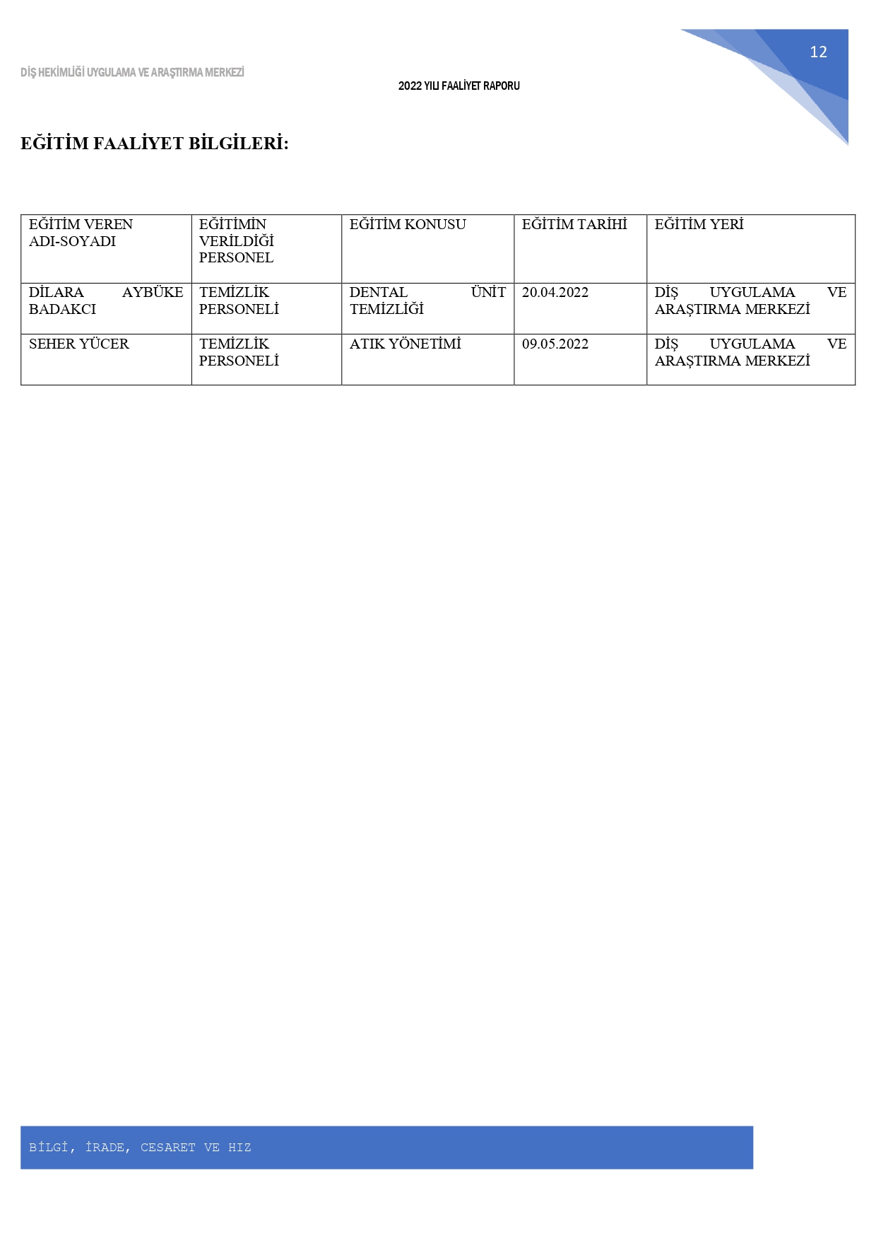 2022 Yılı Birim Faaliyet Raporu