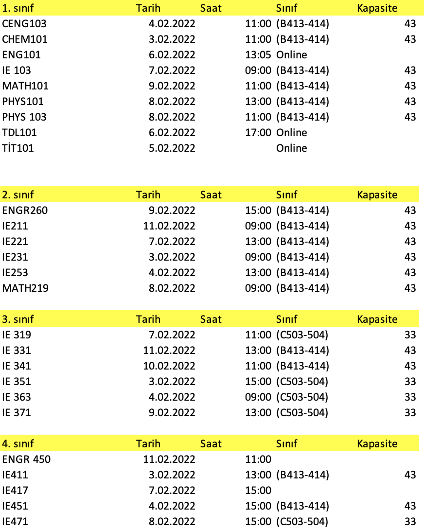 2021-2022 fall Make-up Examination schedule is given as follows. Please follow the announcements for updates until the exam hour.