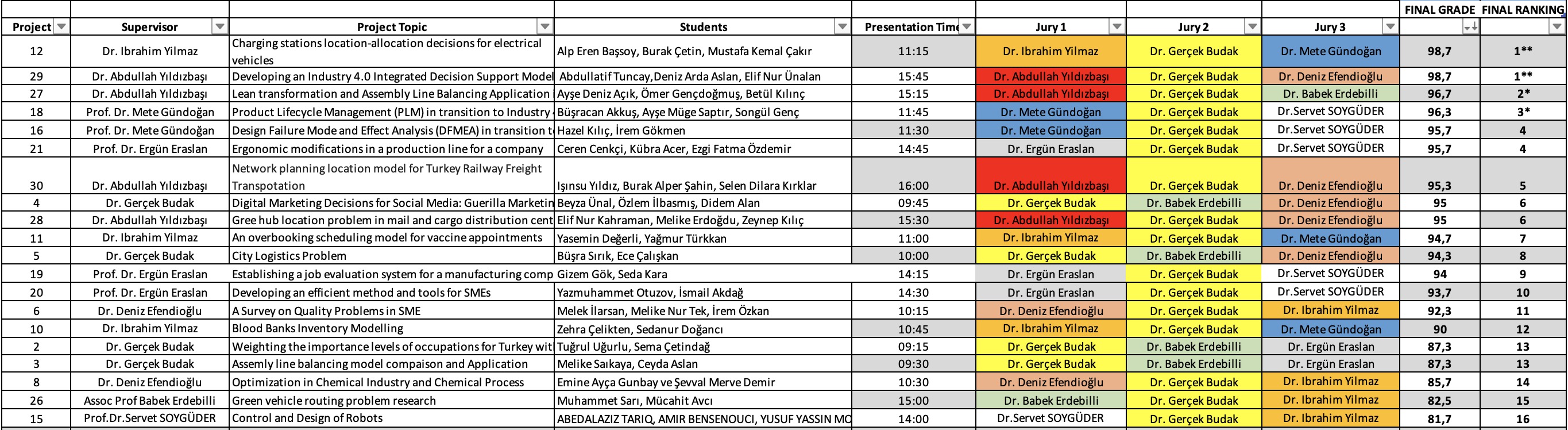 Fall Semester Graduation Thesis Presentations Results