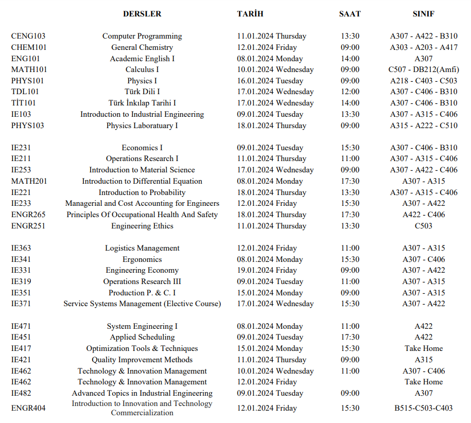MAKE UP EXAM SCHEDULE