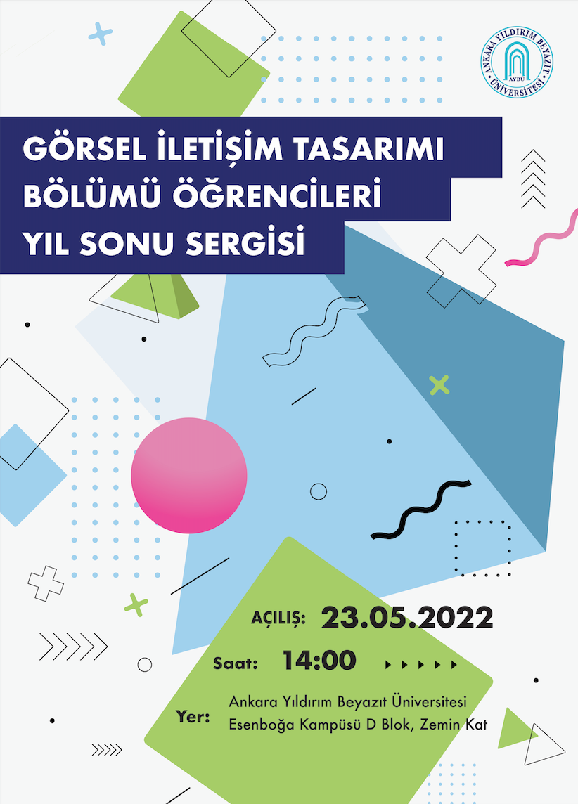 Bölümümüz öğrencilerinin yapmış olduğu tasarımların yer alacağı yıl sonu sergimiz 23.05.2022 tarihi Pazartesi günü saat 14:00'te Ankara Yıldırım Beyazıt Üniversitesi Esenboğa Kampüsü D Blok Zemin katta açılacaktır. Sergimize ilgi duyan bütün sanatseverler davetlidir.