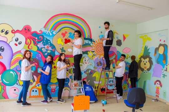 Projenin temeli üniversite ve okul iş birliğini sağlamak adına yürütülecek çeşitli faaliyetlerle okulda eğitim alan öğrencilerin öğrenme kalitesini artırmaya dayanmaktadır. Görsel İletişim tasarımı bölümü öğrencileri ve hocaları Seçil Kartopu ve Sare Şeyma Duran önderliğinde yürütülen etkinlik boyunca okulun ana sınıfı renklendirilmiştir. Anasınıfı ortamının daha canlı ve keyifli bir hale gelmesini sağlayarak, öğrencilerin motivasyonunu artırmak amaçlanmıştır. Üniversite öğrencileri ile yürütülen bu proje, onlara üniversite kazanımlarını uygulayacak alan sunmuştur. Üniversitemiz eğitim hayatının başında bulunan ilkokul ve ortaokul öğrencilerine yerelden başlayarak etki etmiştir. Bu faaliyetlerde görev alan AYBÜ öğrencilerinin toplumsal katkının önemini kavraması ve sosyal duyarlıklarının gelişmesi açısından önemli olmakla birlikte, öğrenciler danışman hocalarının bilgi ve deneyimlerinden standart öğrenim alanlarının dışında yararlanma fırsatı bularak, aktif bir öğrenme ve öğretme süreci geçirmiştir.