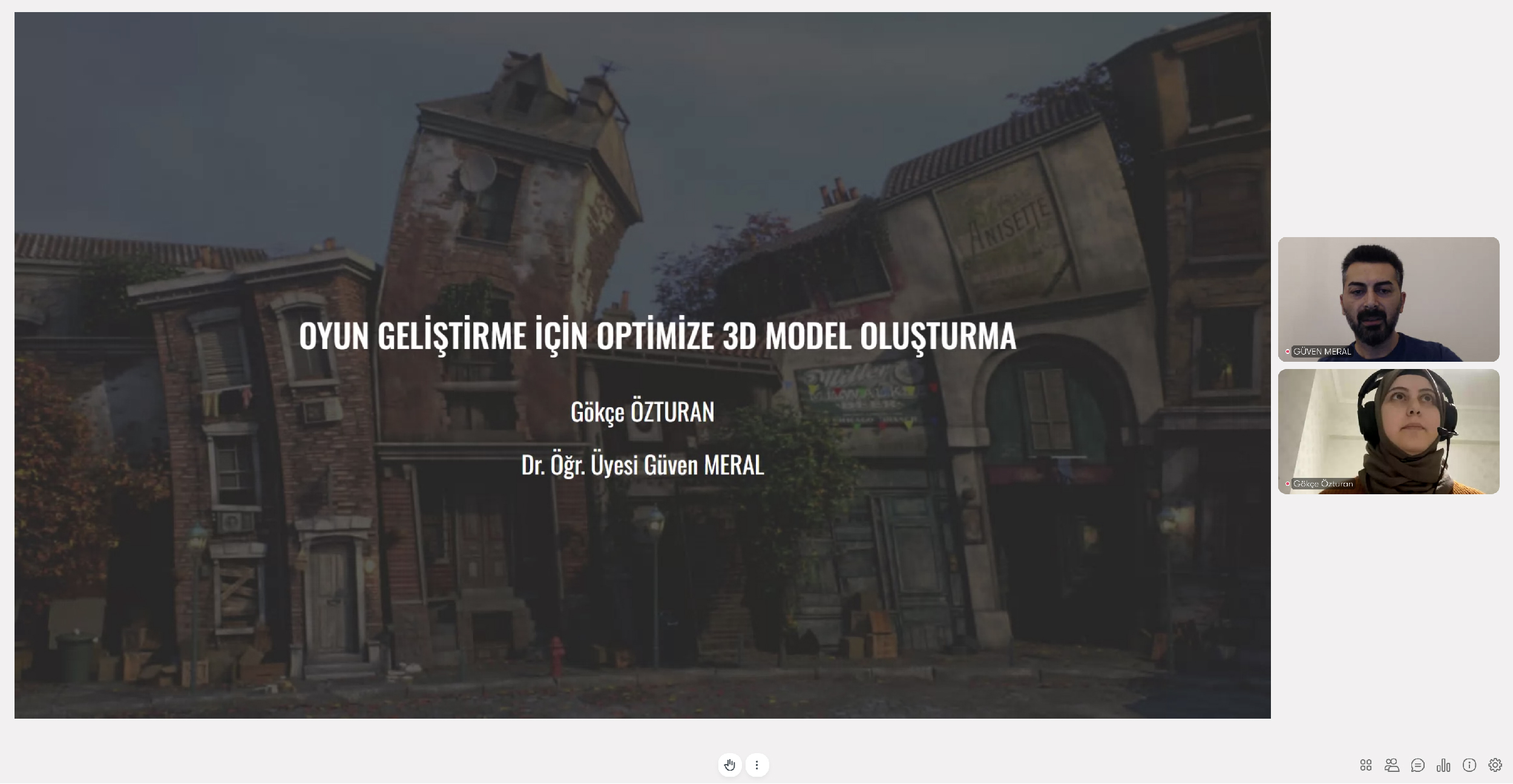 Moderatörlüğünü Dr. Öğr. Üyesi Güven Meral'in yapmış olduğu Gökçe ÖZTURAN ile çevrim içi söyleşi 10 Kasım 2023 Cuma günü gerçekleştirilmiştir. ÖZTURAN oyun geliştirme için optimize 3d model oluşturma hakkında öğrencilerimize bilgiler vermiş, söyleşi sonunda öğrencilerimizden gelen soruları yanıtlamıştır.