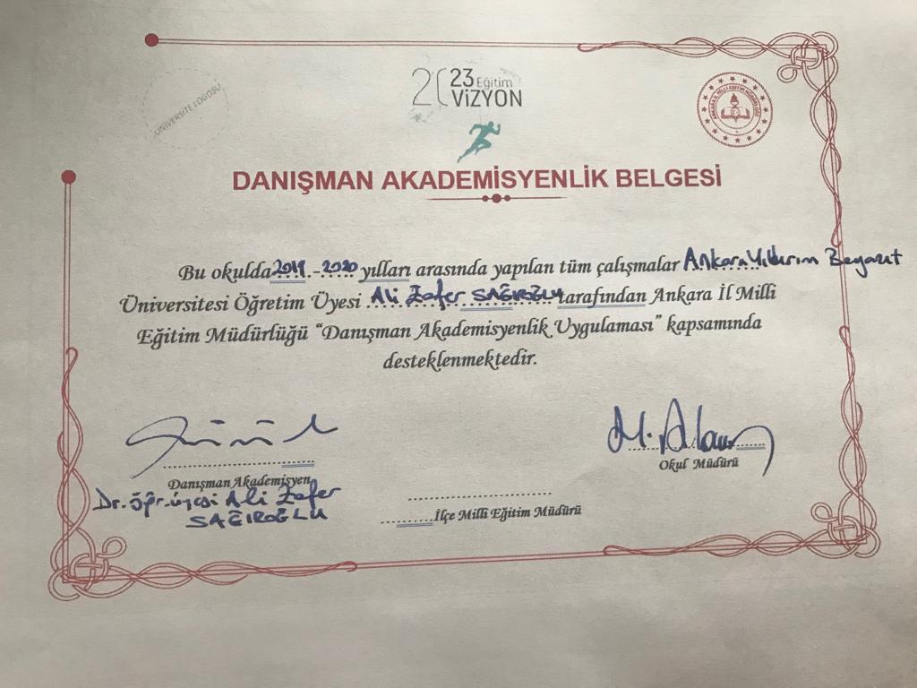 Milli Eğitim Bakanlığı 2023 Eğitim Vizyonu hedefleri çerçevesinde Ankara İl Milli Eğitim Müdürlüğünce geliştirilen "Danışman Akademisyen Uygulaması" kapsamında yoğun bir sığınmacı nüfusa ev sahipliği yapan Altındağ Fatih Sultan Mehmet İlkokuluna akademik danışmanlık desteği Merkezimiz tarafından verilecek. 2019-2010 eğitim öğretim yılını kapsayan protokol Merkez Müdürümüz Dr. Öğr. Üyesi Ali Zafer Sağıroğlu ve Altındağ Fatih Sultan Mehmet İlkokulu Müdürü Hanifi Arslan tarafından imzalandı. Protokolün her iki taraf için hayırlı olmasını dileriz.