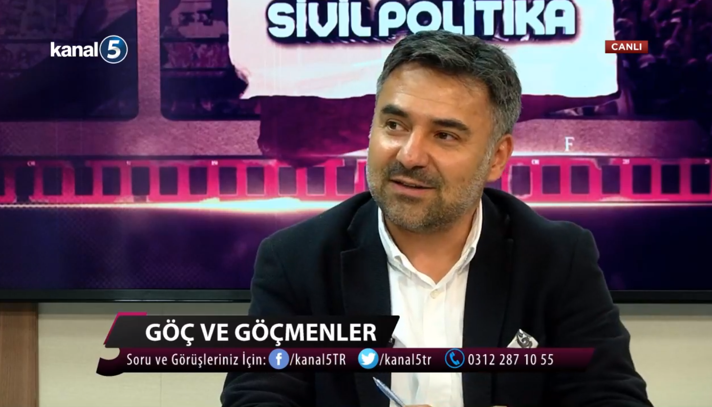 Merkez Müdürümüz Dr. Ali Zafer Sağıroğlu Kanal 5'te "Sivil Politika" programına konuk oldu. Türkiye'deki göç ve göçmenler konusunun ele alındığı programda göç, entegrasyon ve uyum temaları tartışıldı.