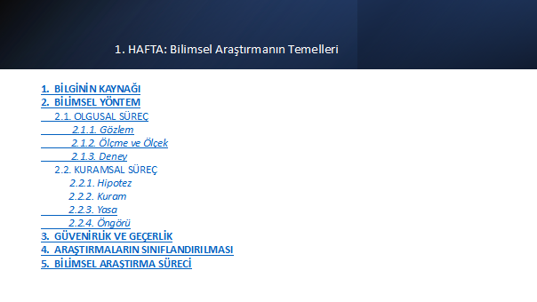 Merkezimiz tarafından düzenlenen "Lisansüstü Eğitime Yönelik Akademik Yazım Teknikleri ve Yöntem Kursu"nun ilk dersi yapıldı. Dr. İbrahim Halil Yılmaz tarafından gerçekleştirilen derste bilimsel araştırma süreç ve teknikleri ele alındı. Derste bilginin kaynağı, bilimsel yöntem, gözlem, ölçme ve ölçek, deney, hipotez, kuram, yasa, öngörü, gerçerlik, güvenirlik gibi bir dizi bilimsel araştırmanın temel kavramları masaya yatırıldı.