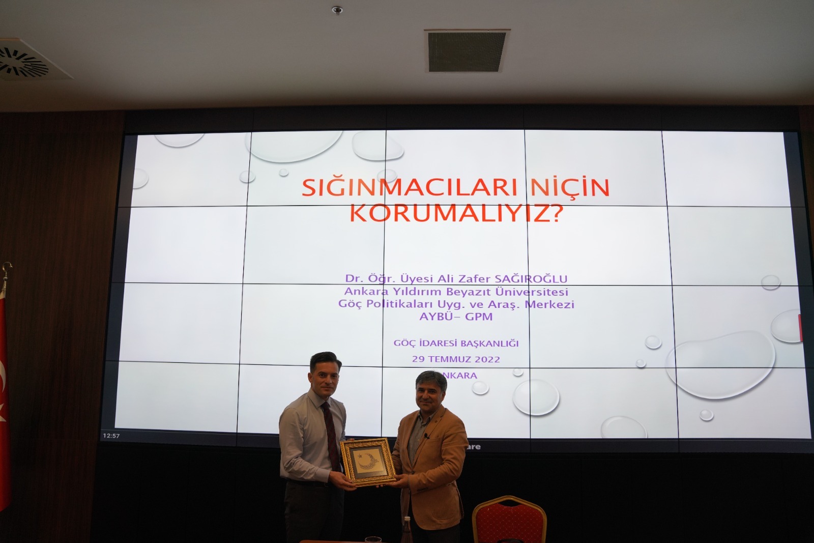 Merkez müdürümüz Dr. Ali Zafer Sağıroğlu 29 Temmuz 2022 tarihinde Göç İdaresi Başkanlığı'nın düzenlediği "Göç Seminerleri" kapsamında "Sığınmacıları Neden Korumak Zorundayız" başlıklı bir sunum gerçekleştirmiştir.