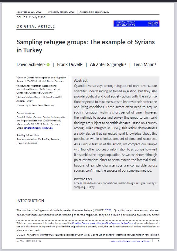 Yeni Yayın: "Sampling refugee groups: The example of Syrians in Turkey"