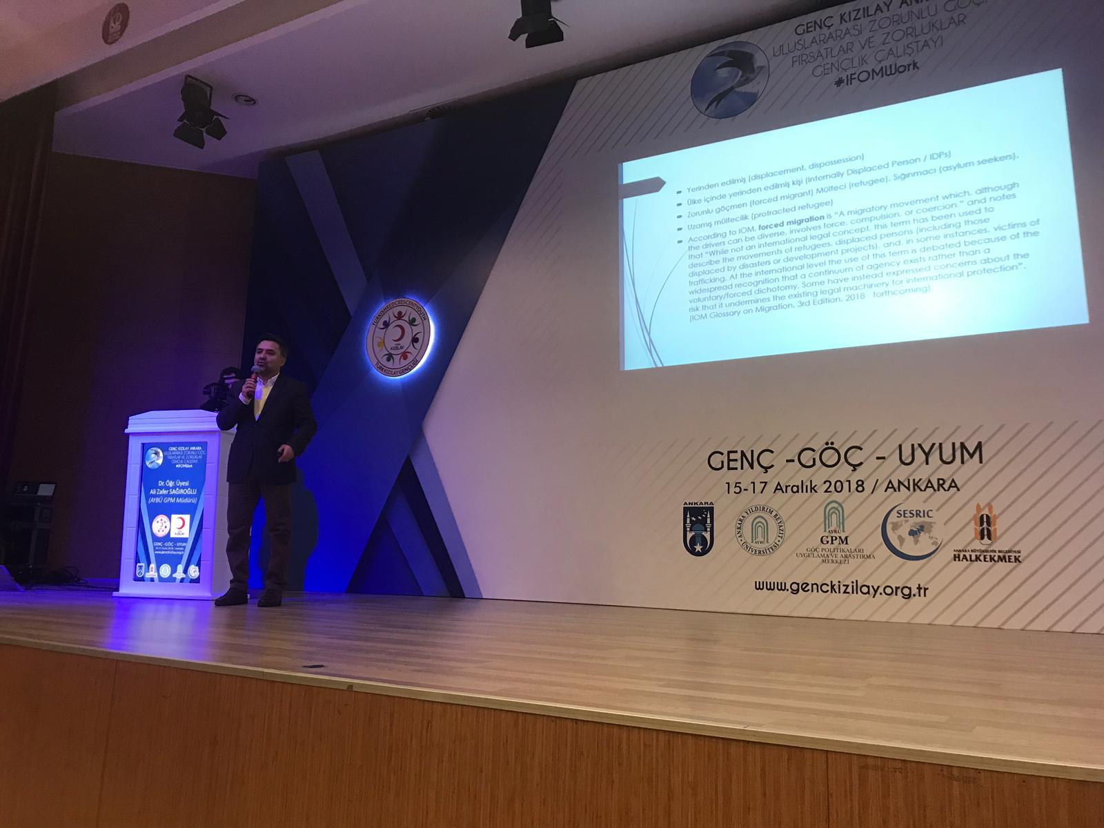 Üniversitemiz, Merkez'imiz (GPM) ve Genç-Türk Kızılayı işbirliğinde “Genç-Göç-Uyum” “Uluslararası Zorunlu Göç: Fırsatlar ve Zorluklar, Gençlik Çalıştayı” başladı. 15-17 Aralık 2018 tarihleri arasında gerçekleşen etkinliğe AYBÜ GPM Müdürü Dr. Ali Zafer Sağıroğlu iştirak etti. Dr. Sağıroğlu, etkinliğin birinci gününde bildiri sunumu ve oturum başkanlığı yaparak, ikinci gün ise seminer vererek ve toplumsal uyum ve göç yönetimi çalıştayına moderatörlük yaparak programa katkı sundu.