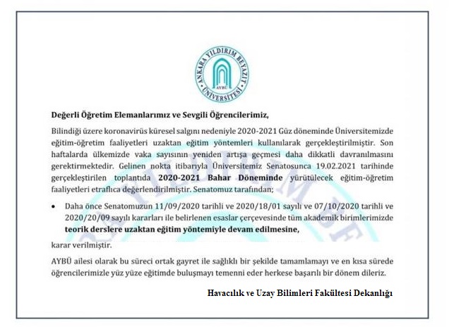 TAI'de yapılacak olan uygulamalı eğitimler ile ilgili sürecin değerlendirilmesi Covid-19 pandemisi tedbirleri kapsamında devam etmekte olup nihai karar önümüzdeki günlerde açıklanacaktır.