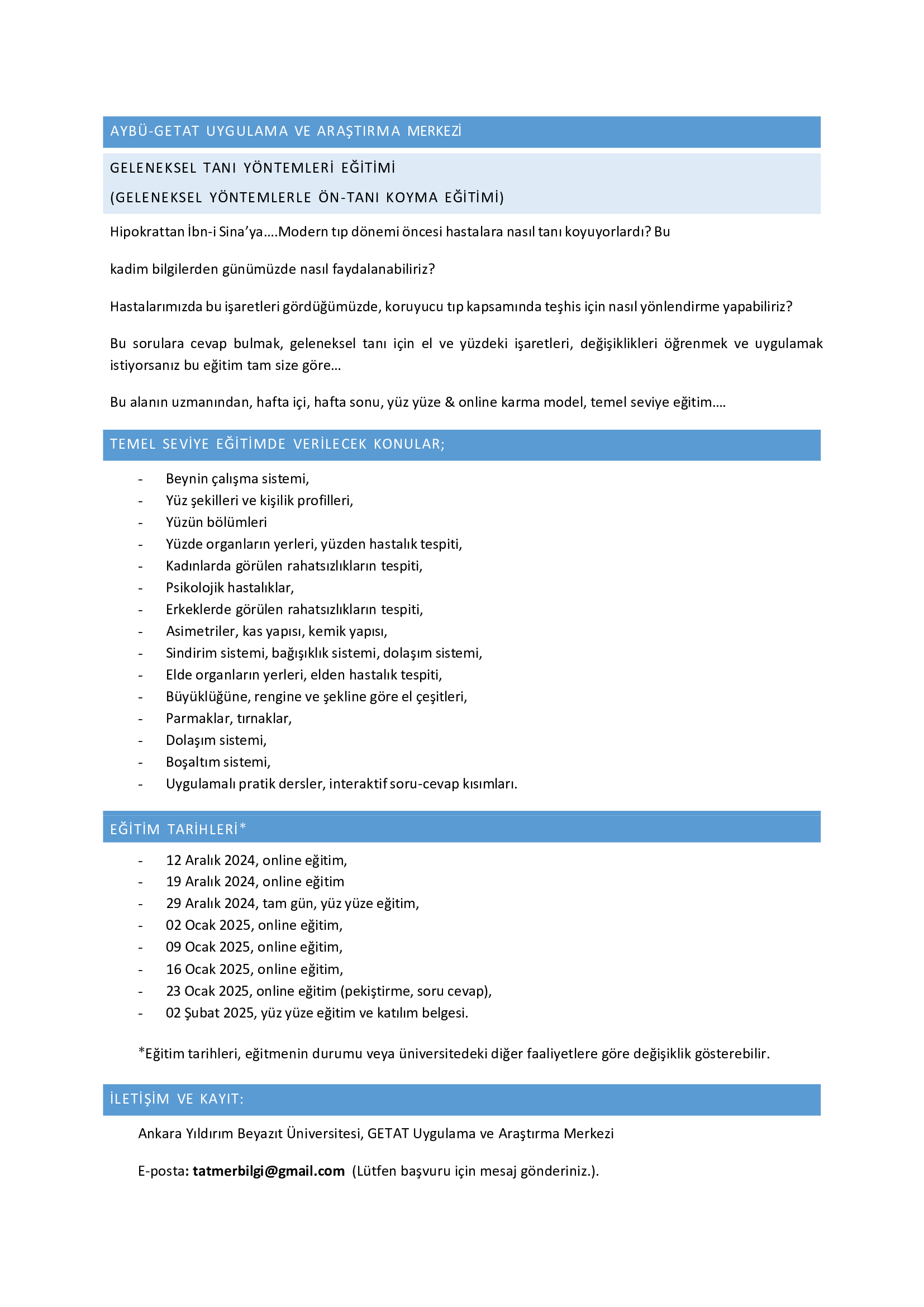 Anadolu Tıbbında Geleneksel Tanı Yöntemleri (Eğitimlerimiz Aralık Ayında Başlıyor)