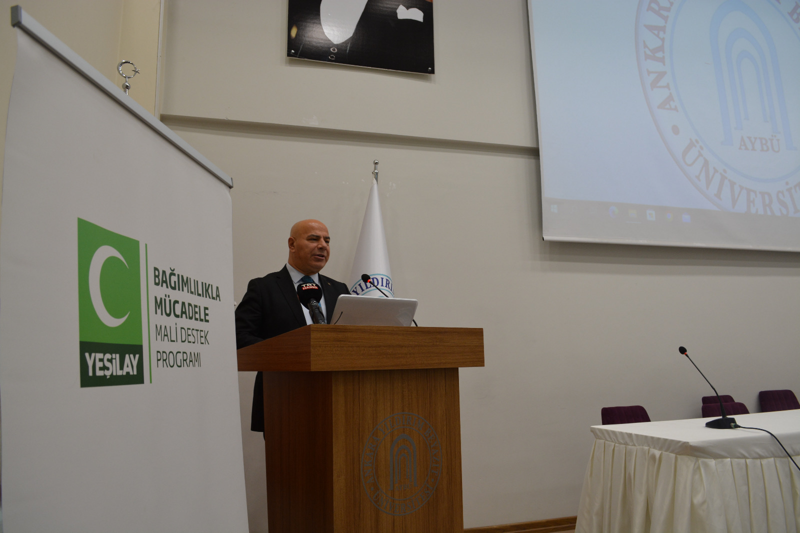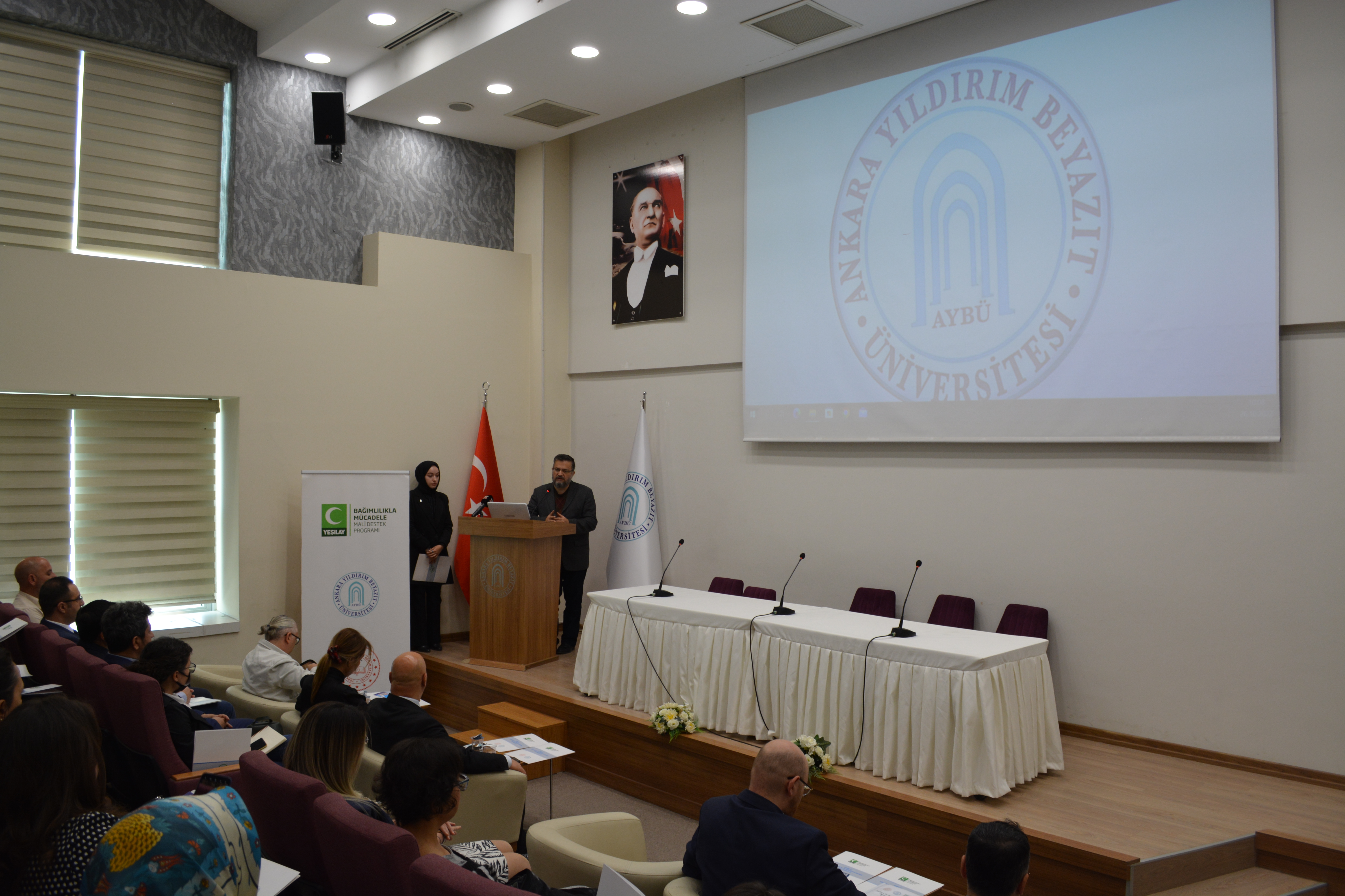 Ankara Milli Eğitim Müdürlüğü ve Ankara Yeşilay Şube iştirakinde, YEŞİLAY Bağımlılıkla Mücadele Mali Destek Programı kapsamında desteklenen ve Ankara Yıldırım Beyazıt Üniversitesi Halk Sağlığı Enstitüsü tarafından yürütülen “Ankara İli Ortaöğretim ve Lise Öğrencileri Arasında Oyun Bağımlılığı” projesi sempozyumu 26.10.2022 tarihinde AYBÜ Etlik 15 Temmuz Şehitleri Yerleşkesi konferans salonunda gerçekleştirilmiştir. Sempozyuma Ankara Vali Yardımcısı Dr. Ayhan ÖZKAN, Halk Sağlığı Genel Müdür Yardımcısı Dr. Öğr. Üyesi Süleyman ÖZSARI konuşmaları ile katılırken, Türkiye E-Spor Federasyonu Yönetim Kurulu Üyesi Yasin Nuri ÇAKIR “Kamusal alanda E-spor eğitimi” sunumunu gerçekleştirmiştir. Yeşilay Ankara Şube Başkanı Sevilay Aslan Dirliktutan’ın da konuk olduğu programda Oyun Bağımlılığı Epidemiyolojisi, Oyun Oynama Bozukluğu konuları ilgili hocalar tarafından sunulmuş olup, projenin tanıtım sunumu Halk Sağlığı Genel Müdür Yardımcısı Doç Dr. Mehmet Enes GÖKLER tarafından gerçekleştirilmiştir.