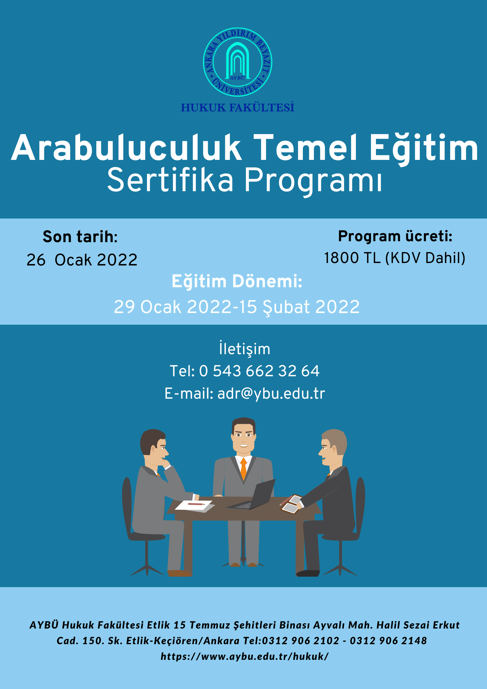 Between 29 January - 15 February 2022, the 4th Certificated Mediation Basic Training Programme will be held face-to-face. The programme will be carried out in the evenings on 3 weekdays and all day during the weekends. The programme will consist of 84-hours in total – 68-hours of theory and 16-hours of practice. The fee for the training is 1.800 Turkish Lira and the number of the students will be limited to 30 people.