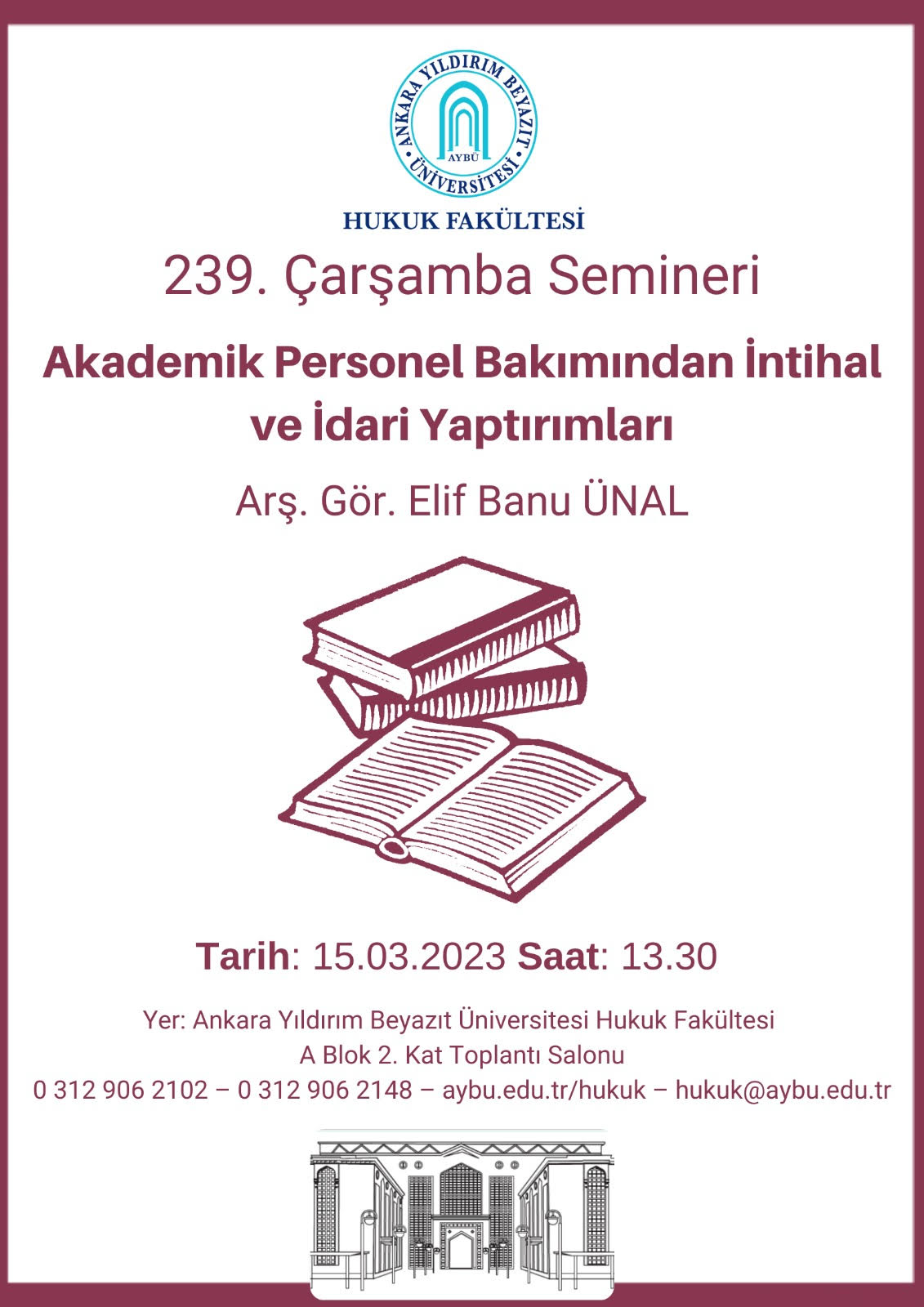 Within the scope of the 239th Wednesday Seminar, titled as Plagiarism and Administrative Sanctions in terms of Academic Personnel, firstly the concept of plagiarism will be defined and which types of actions accepted as plagiarism will be touched upon. Then plagiarism-related regulations in Turkish Law will be referred. In the end, the seminar will conclude with the explanation on the administrative sanctions (as well as the procedure and principles with regard to these sanctions) that may be incurred in case of plagiarism by academic staff.