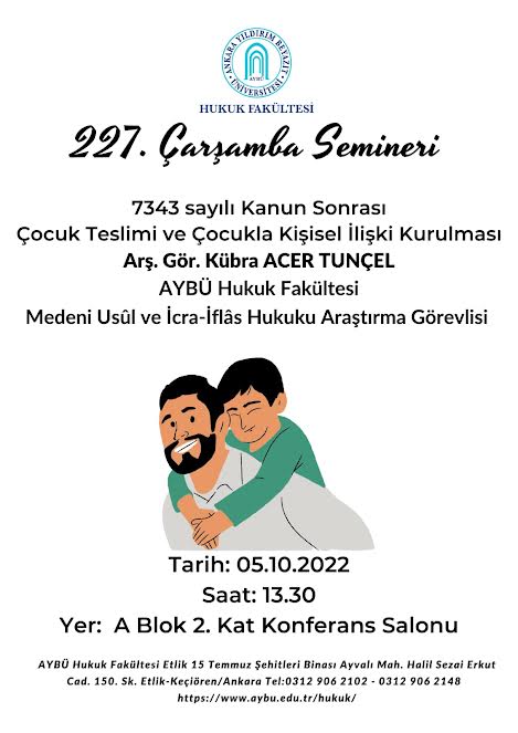 227. Çarşamba Semineri: 7343 sayılı Kanun Sonrası Çocuk Teslimi ve Çocukla Kişisel İlişki Kurulması
