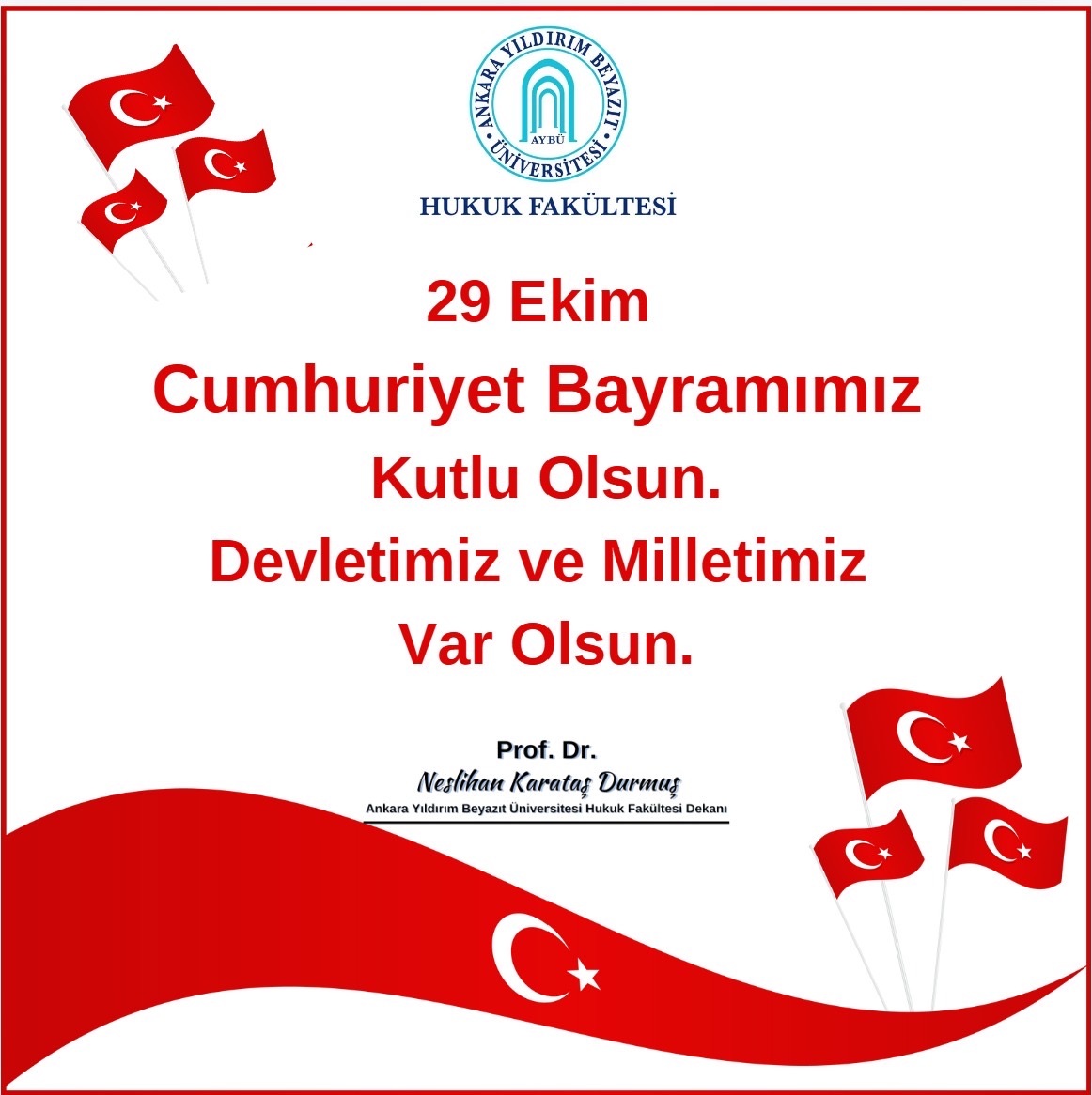 Dekanımız Prof.Dr. Neslihan KARATAŞ DURMUŞ’un 29 Ekim Cumhuriyet Bayramı Mesajı