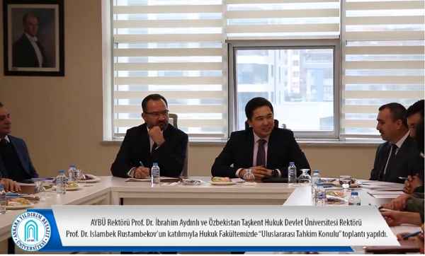 Özbekistan Taşkent Hukuk Üniversitesi Rektörü Prof. Dr. Islambek Rustambekovich ve beraberinde gelen misafirlerimiz, Rektörümüz Prof. Dr. İbrahim AYDINLI’nın da katıldığı bir programla Fakültemizi ziyaret ettiler. 17 Aralık 2021 Cuma günü Fakültemizde gerçekleşen program kapsamında, “Uluslararası Tahkim Konulu” bir toplantı gerçekleştirildi.