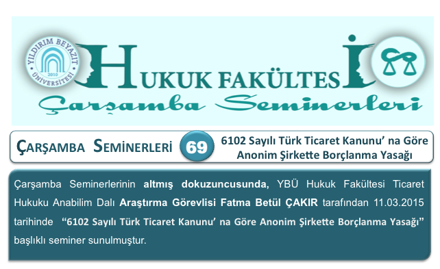 YBÜ Hukuk Fakültesi Çarşamba Seminerleri 69 - 6102 Sayılı Türk Ticaret Kanunu’ na Göre Anonim Şirkette Borçlanma Yasağı