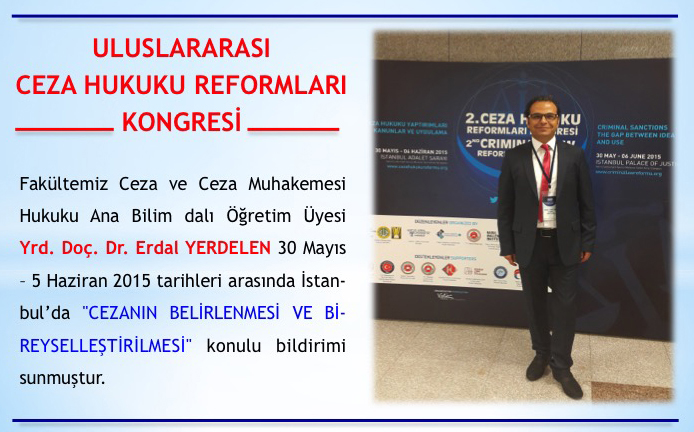 YBÜ Hukuk Fakültesi Yrd. Doç. Dr. Erdal YERDELEN Uluslararası Ceza Hukuku Reformları Kongresinde Bildiri Sunmuştur.