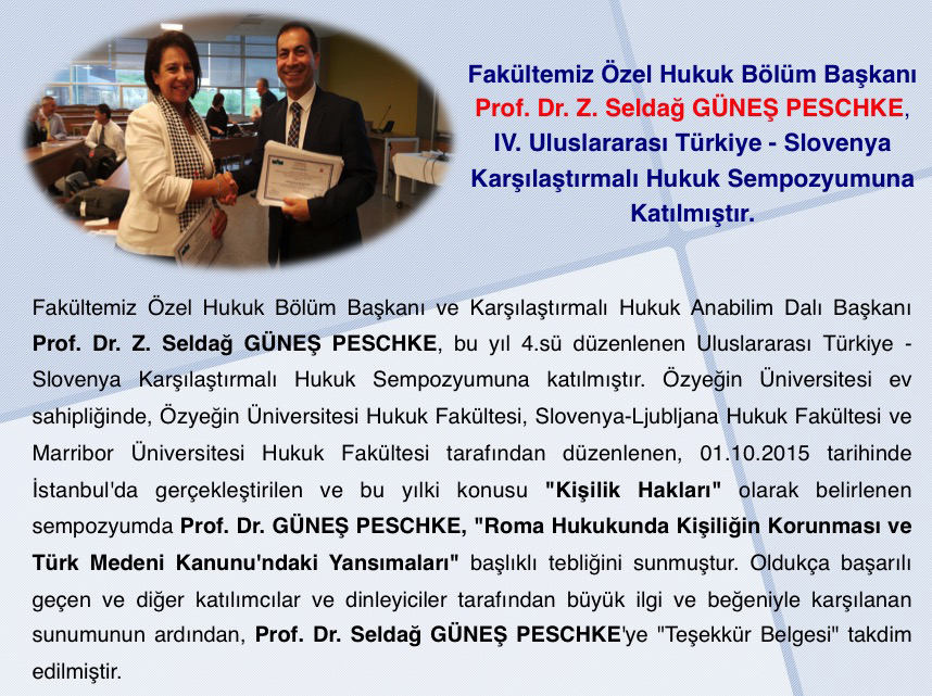 Fakültemiz Özel Hukuk Bölüm Başkanı Prof. Dr. Z. Seldağ GÜNEŞ PESCHKE, IV. Uluslararası Türkiye - Slovenya Karşılaştırmalı Hukuk Sempozyumuna Katılmıştır.
