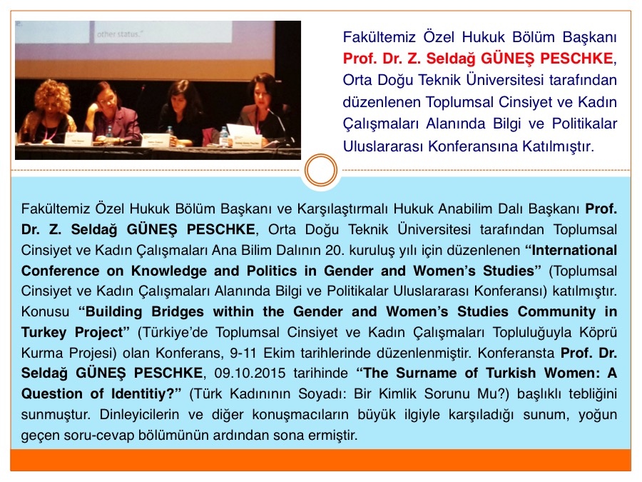 Fakültemiz Özel Hukuk Bölüm Başkanı Prof. Dr. Z. Seldağ GÜNEŞ PESCHKE, ODTÜ Tarafından Düzenlenen Toplumsal Cinsiyet ve Kadın Çalışmaları Alanında Bilgi ve Politikalar Uluslararası Konferansına Katılmıştır.