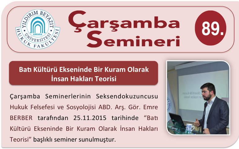 YBÜ Hukuk Fakültesi Çarşamba Semineri 89-Batı Kültürü Ekseninde Bir Kuram Olarak İnsan Hakları Teorisi Adlı Seminer Sunulmuştur.