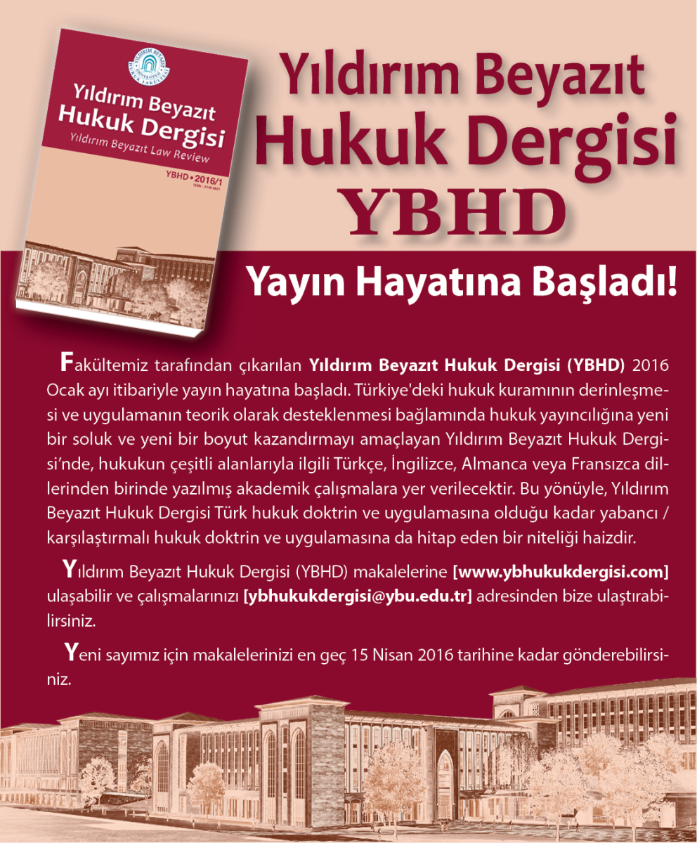 Yıldırım Beyazıt Hukuk Dergisi (YBHD) Yayın Hayatına Başladı!