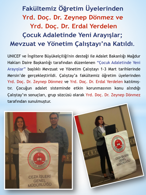Fakültemiz Öğretim Üyelerinden Yrd. Doç. Dr. Zeynep Dönmez ve Yrd. Doç. Dr. Erdal Yerdelen Çocuk Adaletinde Yeni Arayışlar; Mevzuat ve Yönetim Çalıştayı’na Katıldı.