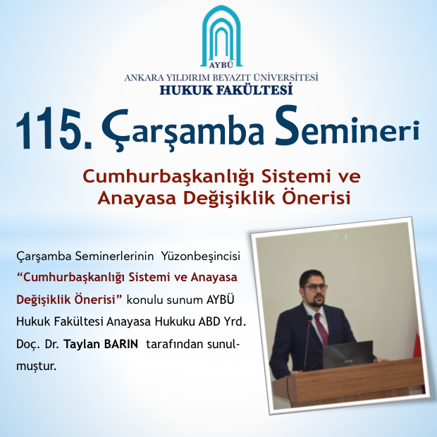 AYBÜ Hukuk Fakültesi Çarşamba Semineri 115–Cumhurbaşkanlığı Sistemi ve Anayasa Değişiklik Önerisi Adlı Sunum Yapılmıştır.