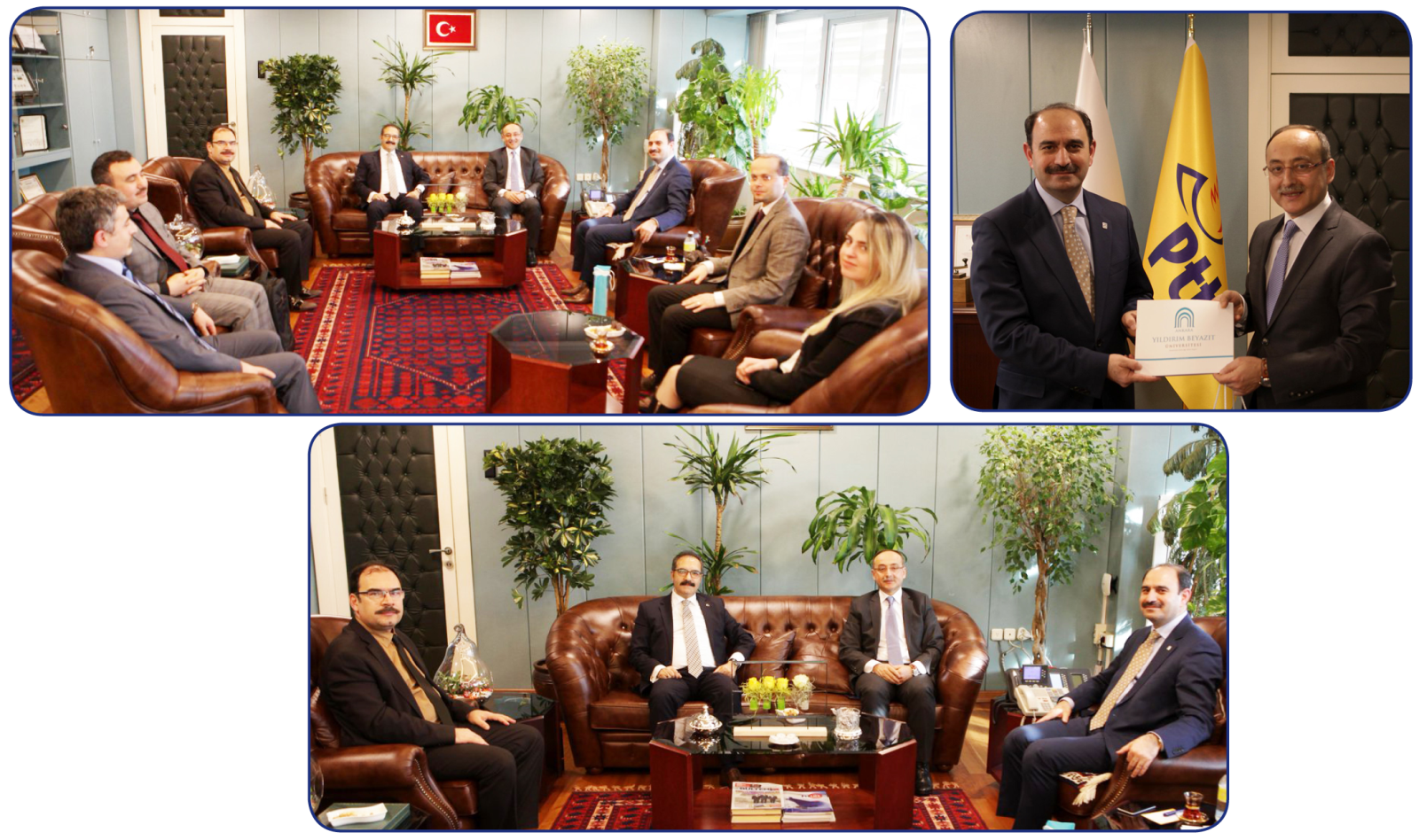 Üniversitemiz ve PTT hakkında tanıtımlarının yapıldığı ziyarette; Üniversitemiz ile PTT arasında geliştirilecek ortak projeler ve eğitim programları işbirliği çalışmalarını içeren ikili işbirliği protokolü imzalandı.