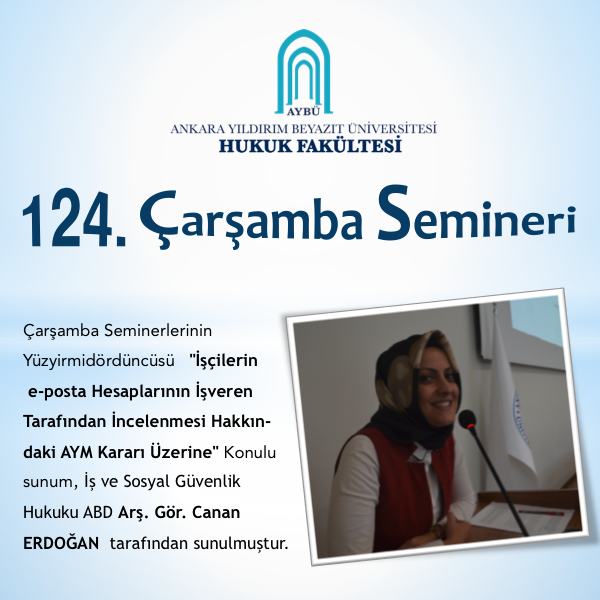 AYBÜ Hukuk Fakültesi Çarşamba Semineri 124–İşçilerin e-posta Hesaplarının İşveren Tarafından İncelenmesi Hakkındaki AYM Kararı Üzerine Konulu Sunum Gerçekleştirildi.