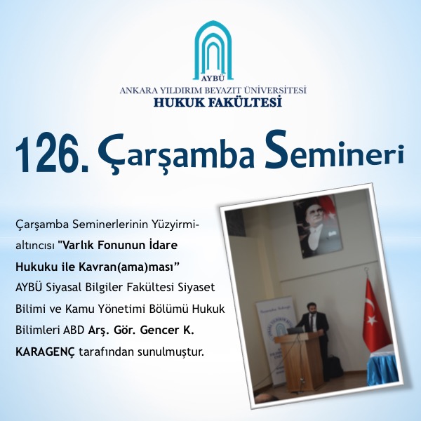 AYBÜ Hukuk Fakültesi Çarşamba Semineri 126-Varlık Fonunun İdare Hukuku ile Kavran(ama)ması Adlı Sunum Gerçekleştirilmiştir.