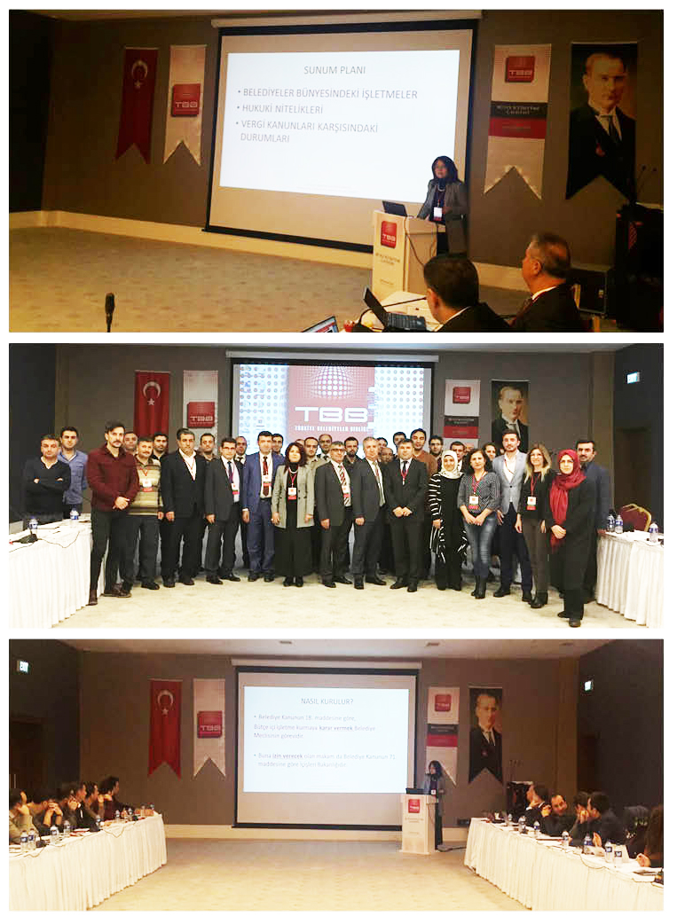 Özellikle bu işletmelerin hukuki yapılarının ve vergilendirilmelerinin nasıl olması gerektiği, uymaları gereken usul kurallarının ne olduğu ve hangi vergiler açısından mükellefiyetlerinin olduğuna dair açıklamalar yapan Fakültemiz öğretim üyesi Sayın Yrd.Doç.Dr.Neslihan KARATAŞ DURMUŞ Belediyeler Bünyesindeki Bütçe İçi İşletmeler ve Vergilendirilmeleri konulu sunum gerçekleştirdi.  Bu işletmelerle ilgili kanuni düzenlemeler ile ikincil mevzuat hükümleri arasındaki çatışmalara dikkat çeken KARATAŞ DURMUŞ, bu çatışma sebebiyle Belediyelerin karşı karşıya kalabilecekleri mali sıkıntılar üzerinde durdu.
