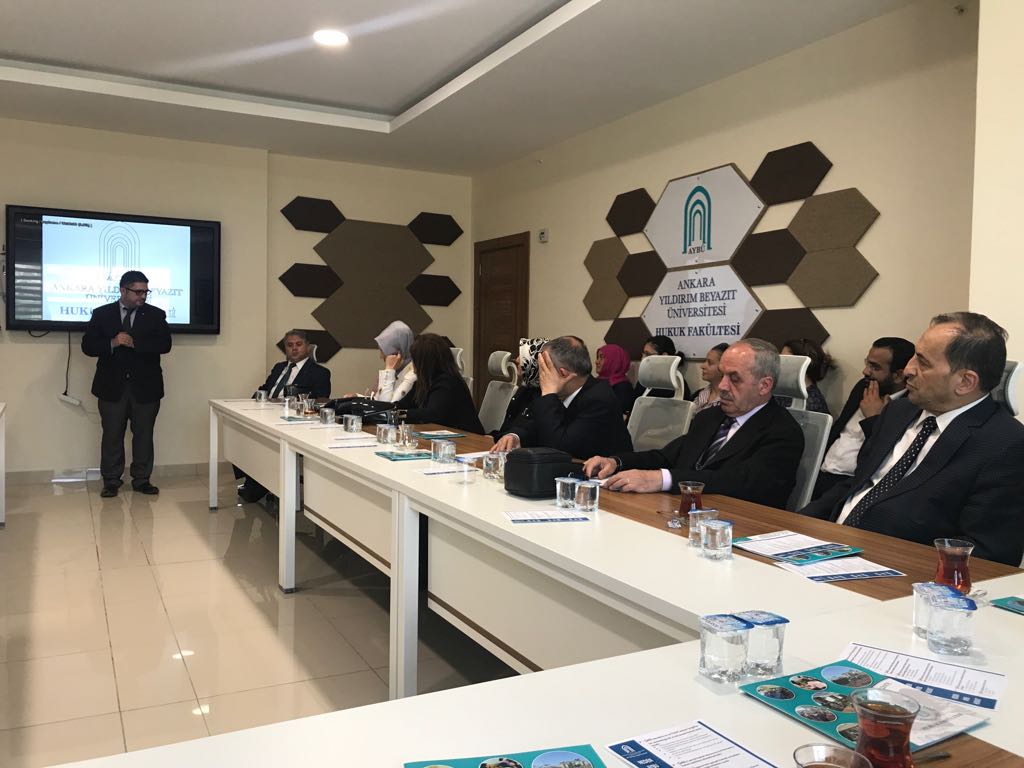 AYBÜ Rektör Yardımcısı ve Fakültemiz Dekanı Prof. Dr. M. Fatih UŞAN, Dekan Yardımcısı Doç. Dr. Fatma Ebru GÜNDÜZ, Araştırma Görevlileri Melike Özge ÇEBİ BUĞDAYCI ve Ensar BAKİ ve Fakülte Sekreterimiz Mehmet ŞAHBALI tarafından ağırlanan misafirlerimize üniversitemiz ve fakültemiz hakkında bilgilendirmede bulunulmuştur. Araştırma görevlisi Ensar BAKİ'nin açılış konuşmasının ardından Dekanımız Prof. Dr. M. Fatih UŞAN, üniversitmizin ve fakültemizin misyon ve hedeflerini anlatarak, en iyi olma idealini yakalamak adına günden güne yol kateden Fakültemiz bünyesinde başarılı öğrencilerimizin hem kendilerine hem de ülkelerine faydalı birer hukukçu olmalarının en büyük ödül olduğunu vurgulamıştır. Prof. Dr. M. Fatih UŞAN'dan sonra fakülte öğrencilerini temsilen hazır bulunan öğrencilerimiz, üniversitemizin ve fakültemizin kendilerine sundukları imkanlar ve aldıkları eğitimden duydukları memnuniyet hakkında katılımcılara hitap etmişlerdir. misafirlere ikram edilen yemeğin ardından başta Dekanımız Sayın Prof. Dr. M. Fatih UŞAN olmak üzere ev sahipliğini üstlenen akademik personelimiz nezaretinde misafirlerimize binamız gezdirilmiştir. katılımcılarımızın bizlerden beklentilerini daha iyi anlamak adına gerçekleştirilen anket çalışması ve üniversitemizi tanıtıcı hediyelerin takdimiyle sonlandırılan etkinliğin faydalı ve bilgilendirici olduğunu ifade eden misafirlerimiz, kendileriyle yakından ilgilenen başta Prof. Dr. M. Fatih UŞAN olmak üzere bütün akademik kadromuza memnuniyetlerini ve teşekkürlerini sunmuşlardır.