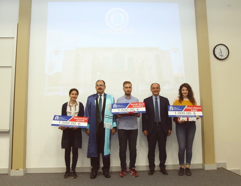 Açılış konuşmalarının ardından Fakültemize bu yıl puan sıralamasına göre 1. sırada yerleşen öğrencimiz Burak Berk KESMEZ, 2. sırada yerleşen öğrencimiz Merve Nur GEYİK ve 3. sırada yerleşen öğrencimiz Gizem Aleyna SARI’ya, Rektörümüz Prof. Dr. Metin DOĞAN ve Dekanımız Prof. Dr. M. Fatih UŞAN tarafından ödüller takdim edildi.