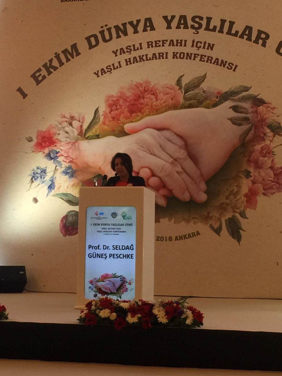 Fakültemiz öğretim üyesi Prof. Dr. Seldağ GÜNEŞ PESCHKE 1 Ekim Dünya Yaşlılar günü nedeniyle T.C. Aile, Çalışma ve Sosyal Hizmetler Bakanlığı ve Ankara Üniversitesi Yaşlılık Çalışmaları Uygulama ve Araştırma Merkezi (YAŞAM) iş birliğiyle “Yaşlı Refahı İçin Yaşlı Hakları” başlıklı konferansa katılarak sunum yapmıştır. Aile Çalışma ve Sosyal Hizmetler Bakanı Sayın Zehre Zümrüt SELÇUK ve Sayın Emine ERDOĞAN’nın da katılımıyla 02 Ekim 2018 tarihinde Ankara’da gerçekleştirilen konferansta Prof. Dr. Seldağ GÜNEŞ PESCHKE, “Yaşlıların Hukuken Korunması: Uygulamadan Örnekler” başlıklı tebliğini sunmuştur. Tebliğinde yaşlıların hukuki korunmasını Yargıtay kararları çerçevesinde ele alan ve bu alandaki güncel uygulamalara ışık tutan Prof. Dr. Seldağ GÜNEŞ PESCHKE, yaptığı hukuki ve toplumsal analizlerle başta akademisyen ve bürokratalar olmak üzere toplantıya katılan herkesin beğenisini kazanmıştır.