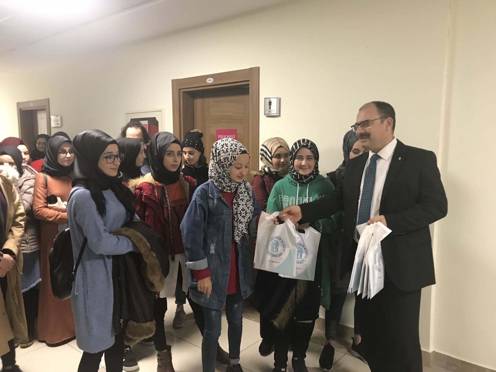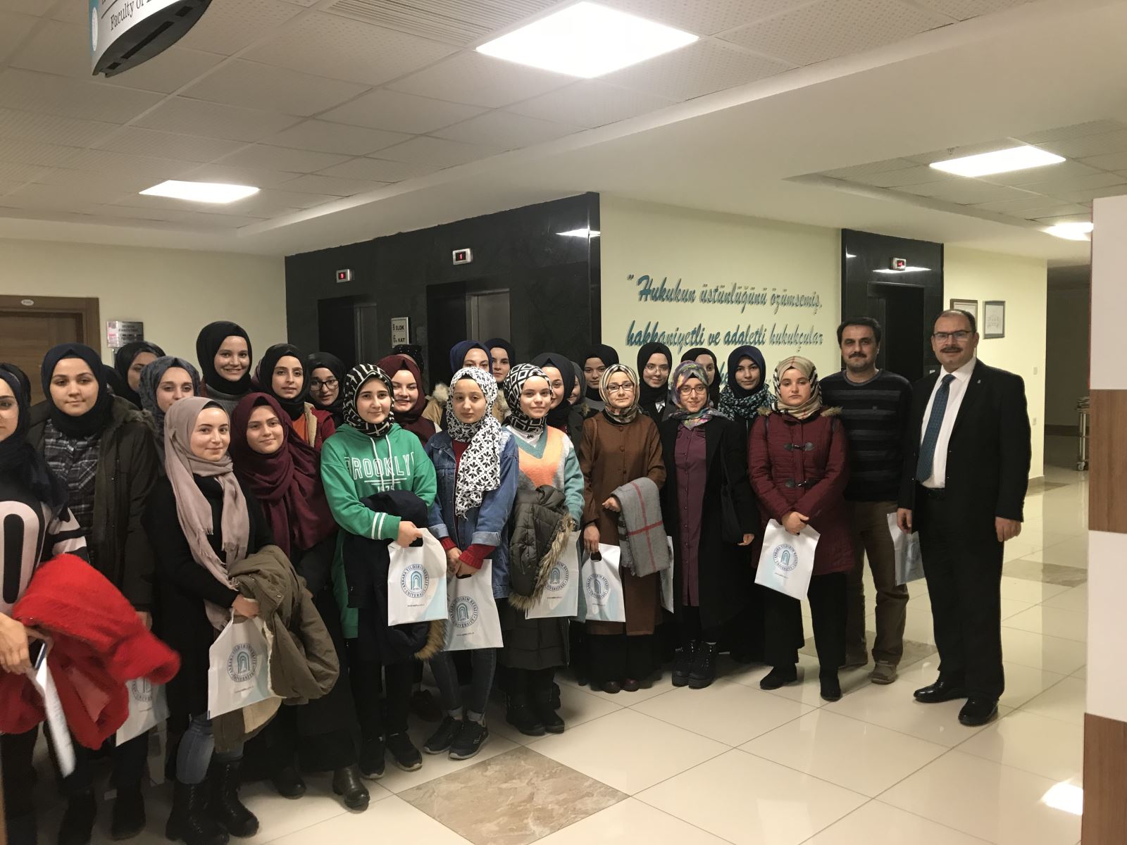 29 Kasım 2018 tarihinde Erbaa Kız Anadolu İmam Hatip Lisesi öğrencileri fakültemiz hakkında bilgi sahibi olmak amacıyla ziyarete geldiler. Ziyaretçilere Fakültemiz Dekanı Sn. Prof. Dr. M. Fatih UŞAN’ın katılımıyla amfiler, sinema salonu, kurgusal duruşma salonu, kütüphane, yemekhaneler gezdirilerek tanıtım yapıldı ve sosyal imkanlar hakkında bilgi verildi. Ardından öğrencilere hediyeler dağıtıldı.