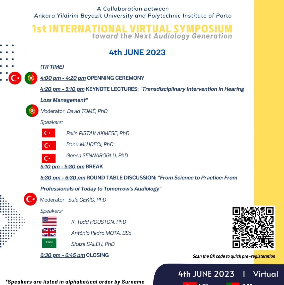 Our department students Ömer Aydemir, Firdevs Göğabakan, Ahmet Turgay Kaya and İbrahim Emre Macit provided professional simultaneous interpretation service to the participants at the international symposium titled "1st International Virtual Symposium, toward the Next Audiology Generation". We congratulate our students and wish them success.