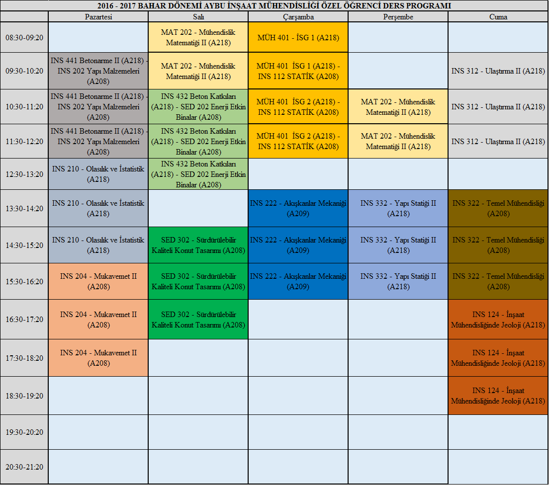Özel Öğrenciler - Ders Programı (21/02/2017)