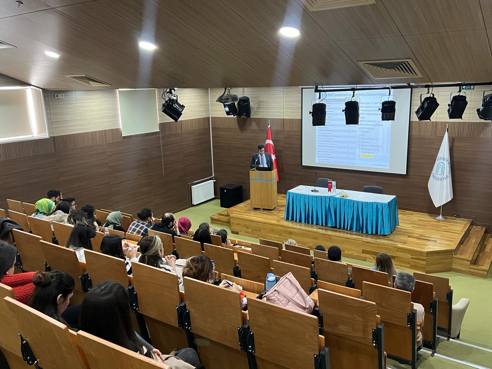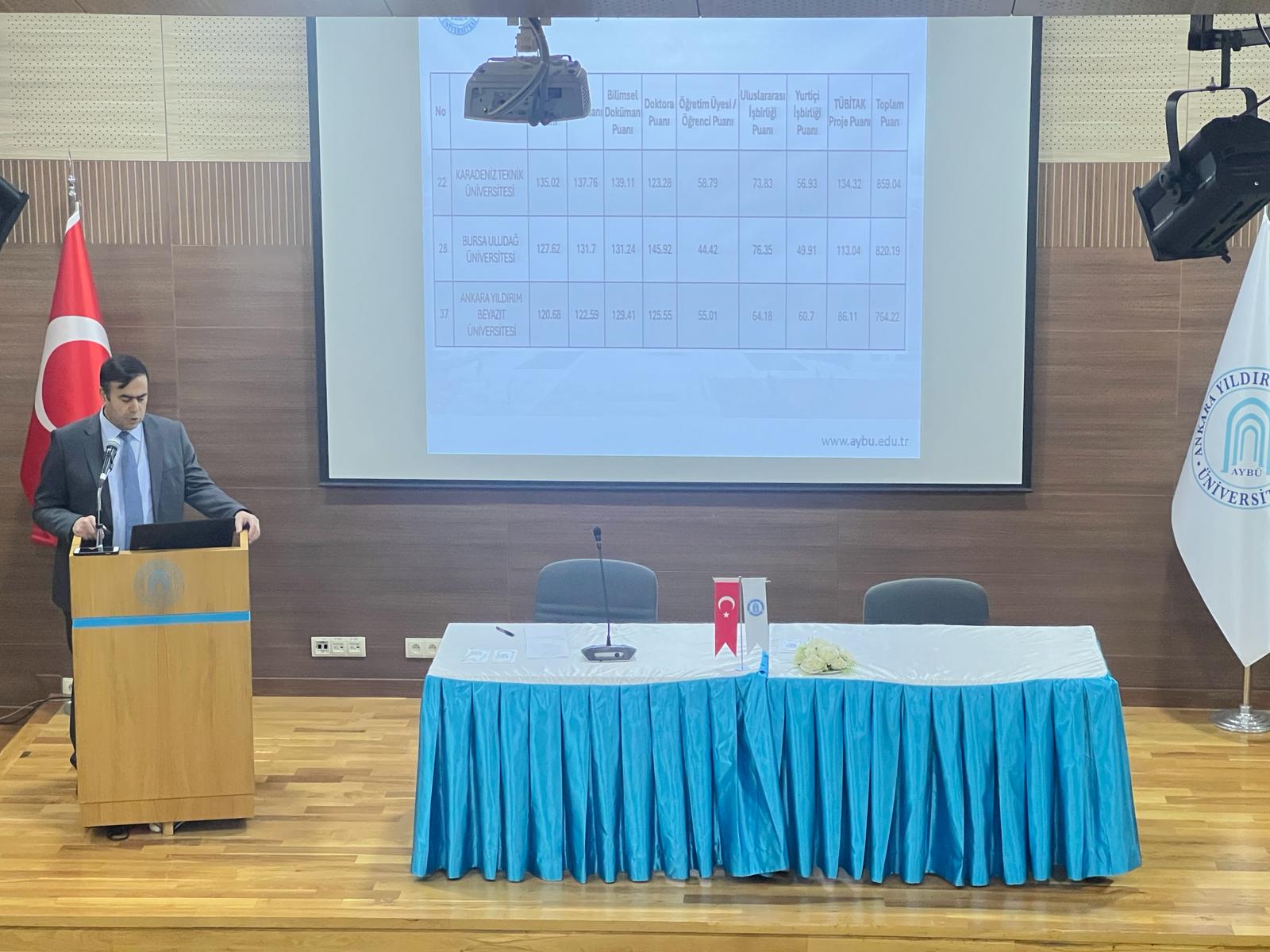 Üniversitemiz Bilimsel Araştırma Projelerinin (BAP) yeni uygulaması ve mevzuatı hakkında akademik personelin bilgilendirilmesi amacıyla 07.03.2024 Perşembe günü saat 14.00-16.00 arasında Esenboğa Yerleşkesi A blok Konferans Salonunda bilgilendirme toplantısı yapılmıştır. Bilgilendirme Toplantısı kapsamında dekanımız Prof. Dr. Hüseyin TUTAR tarafından sunum gerçekleştirilmiştir.