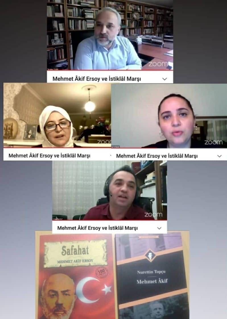Ankara Yıldırım Beyazıt Üniversitesi İnsan ve Toplum Bilimleri Fakültesi Türk Dili ve Edebiyatı Bölümü ve Ankara Yıldırım Beyazıt Üniversitesi Genç Edebiyatçılar Topluluğu işbirliğiyle düzenlenen Mehmet Akif Ersoy ve İstiklâl Marşı Paneli 12 Mart 2021 Cuma günü saat 20:00’de çevrimiçi olarak gerçekleştirildi. Panelde Prof. Dr. İbrahim TÜZER Hocamızın yönetiminde Prof. Dr. Münire Kevser BAŞ, Prof. Dr. Ayşe DEMİR ve Dr. Öğr. Üyesi Cengiz KARATAŞ hocalarımız Mehmet Akif Ersoy ve İstiklâl Marşı üzerine değerli bilgi ve görüşlerini paylaştılar.