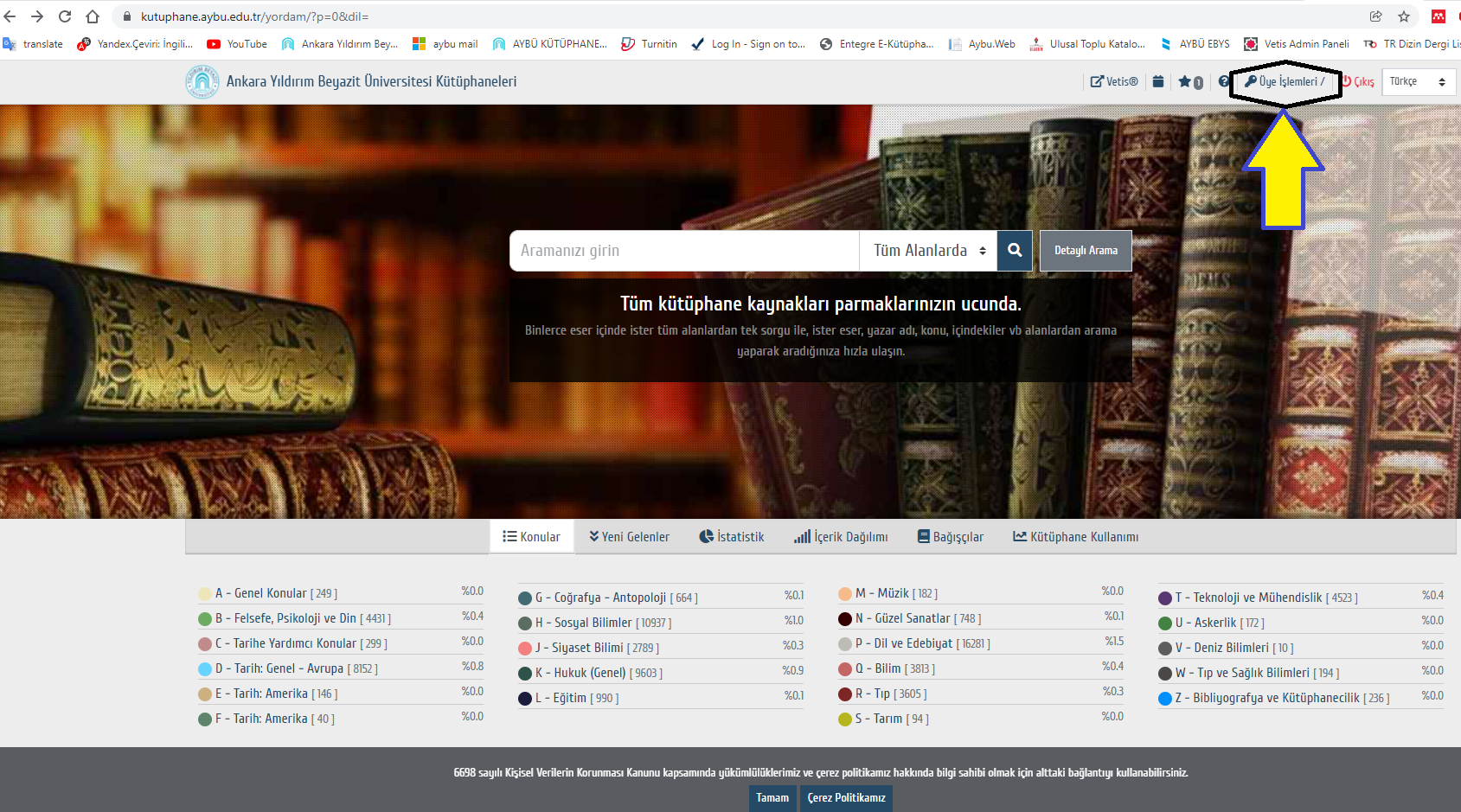 NOT: Kütüphaneden ödünç kitap alan veya VETİS kaydı bulunan her kullanıcının kütüphane hesabı mevcuttur.
