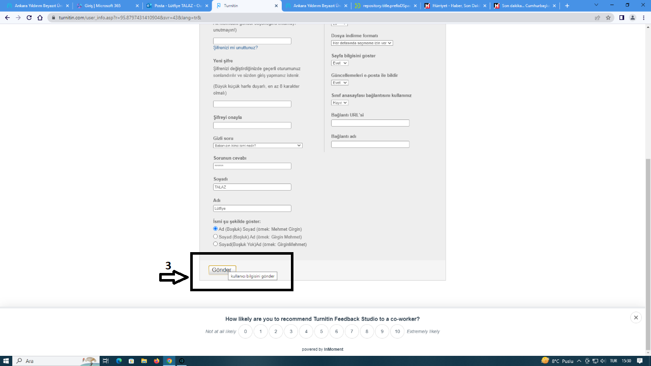 HATIRLATMA-Turnitin ve iThenticate kullanıcı bilgileri, mail değişikliği, için tıklayınız.