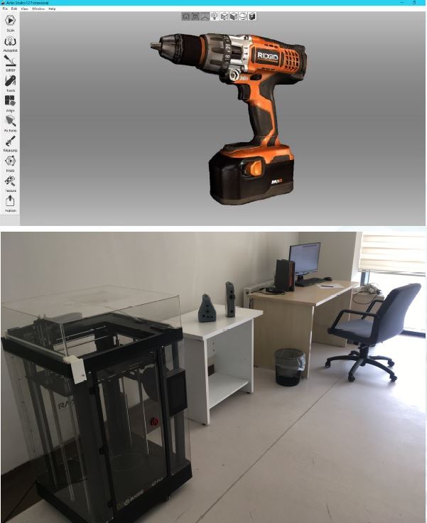 Merkezimizde hizmet veren Raise3D N2 Plus, yazdırma boyutu ve kalitesi bakımından 2018 yılında en iyi büyük format 3 boyutlu yazıcı ödülünü almıştır. Endüstri standartlarında PLA ve ABS gibi malzemeler yanında karbon fiber, PETG ve HIPS gibi özel malzemelerle de üretim yapabilmektedir.