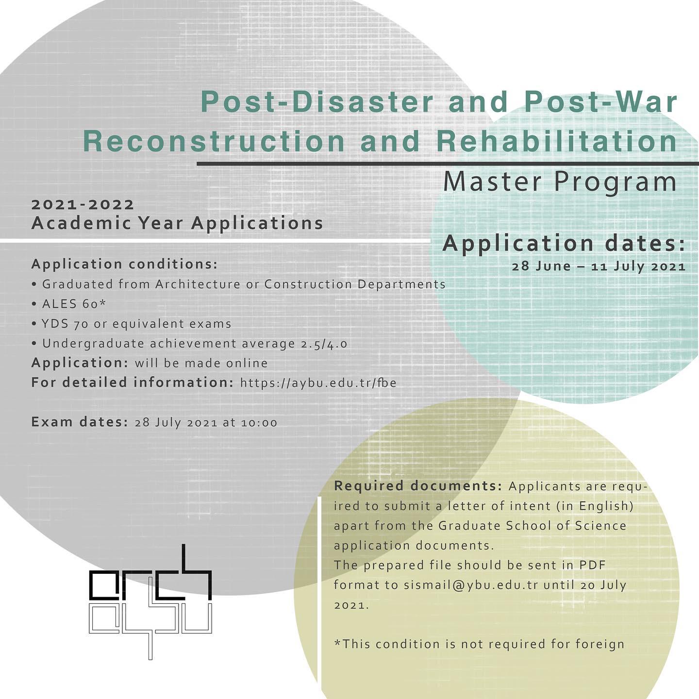 Post-Disaster and Post-War Reconstruction and Rehabilitation Master Program