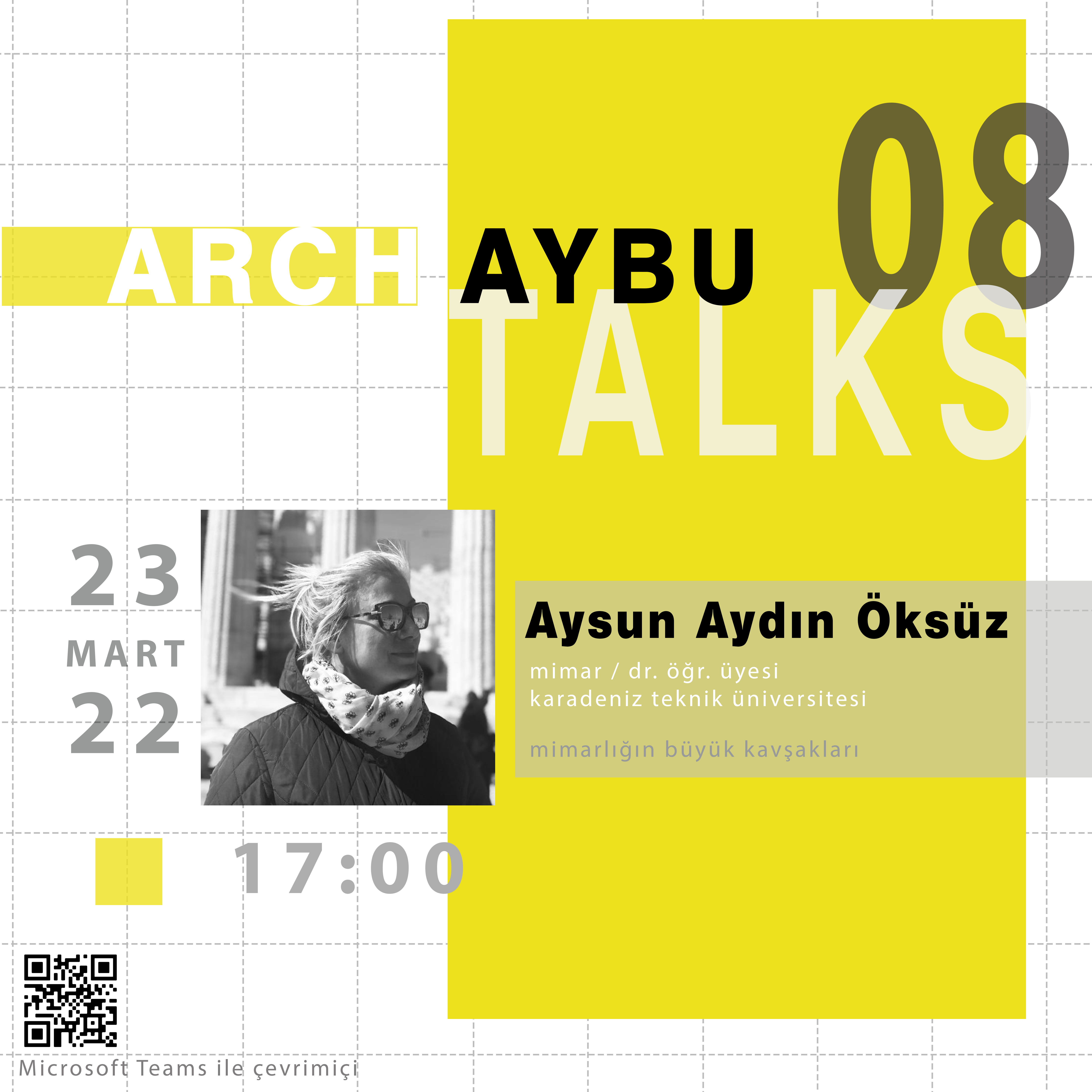 23.03.2022 tarihinde saat 17:00de yapılacak olan ArchaybuTalks 08'in konuğu Dr. Öğr. Üyesi Aysun Aydın Öksüz (Karadeniz Teknik Üniversitesi). Karekod üzerinden toplantıya erişim sağlayabilirsiniz.