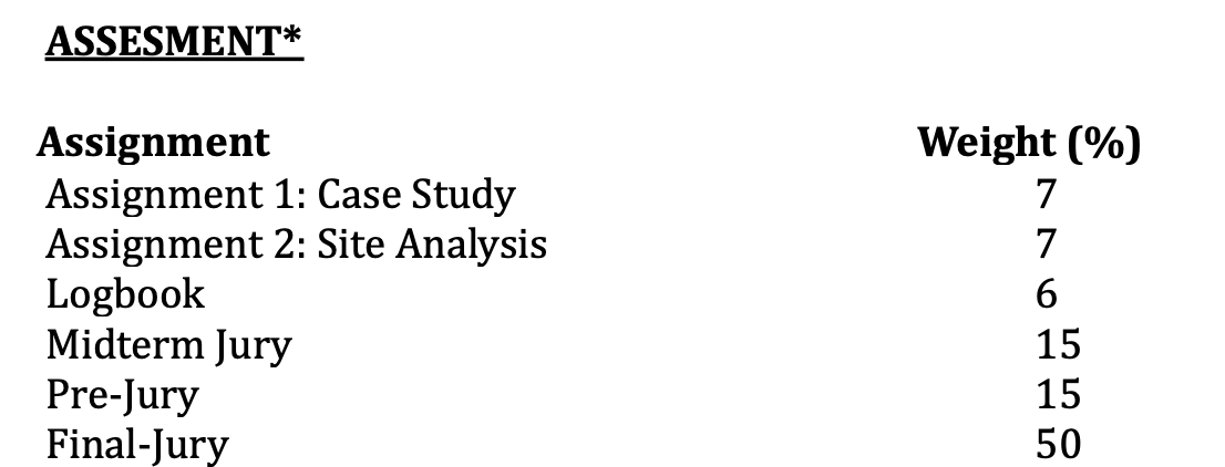 Midterm Jury: Site Analysis & Scenario & Concept (exact date tba) |