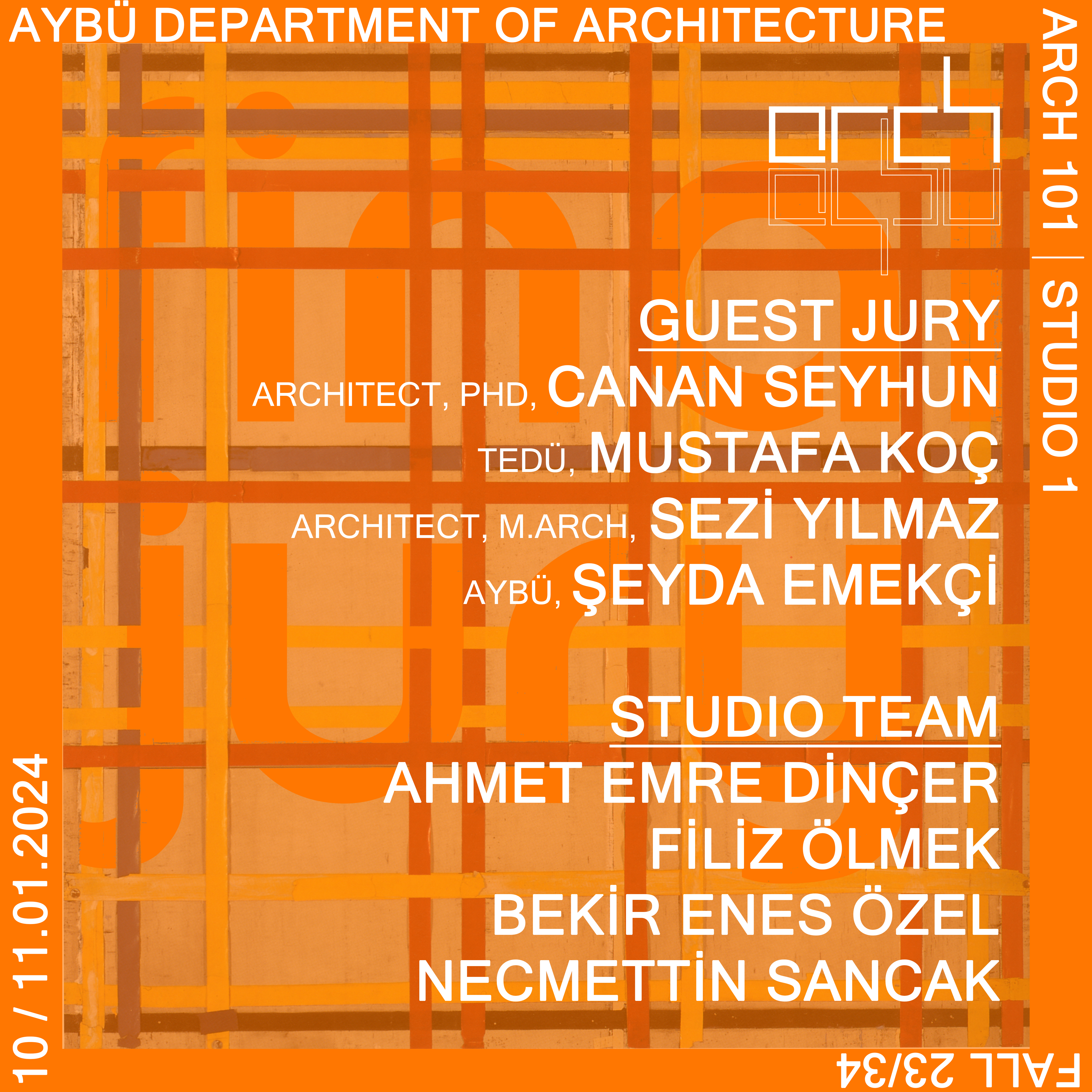Arch 101 STUDIO I dersinin final jurisi 10/11.01.2024 tarihinde yapılacaktır.