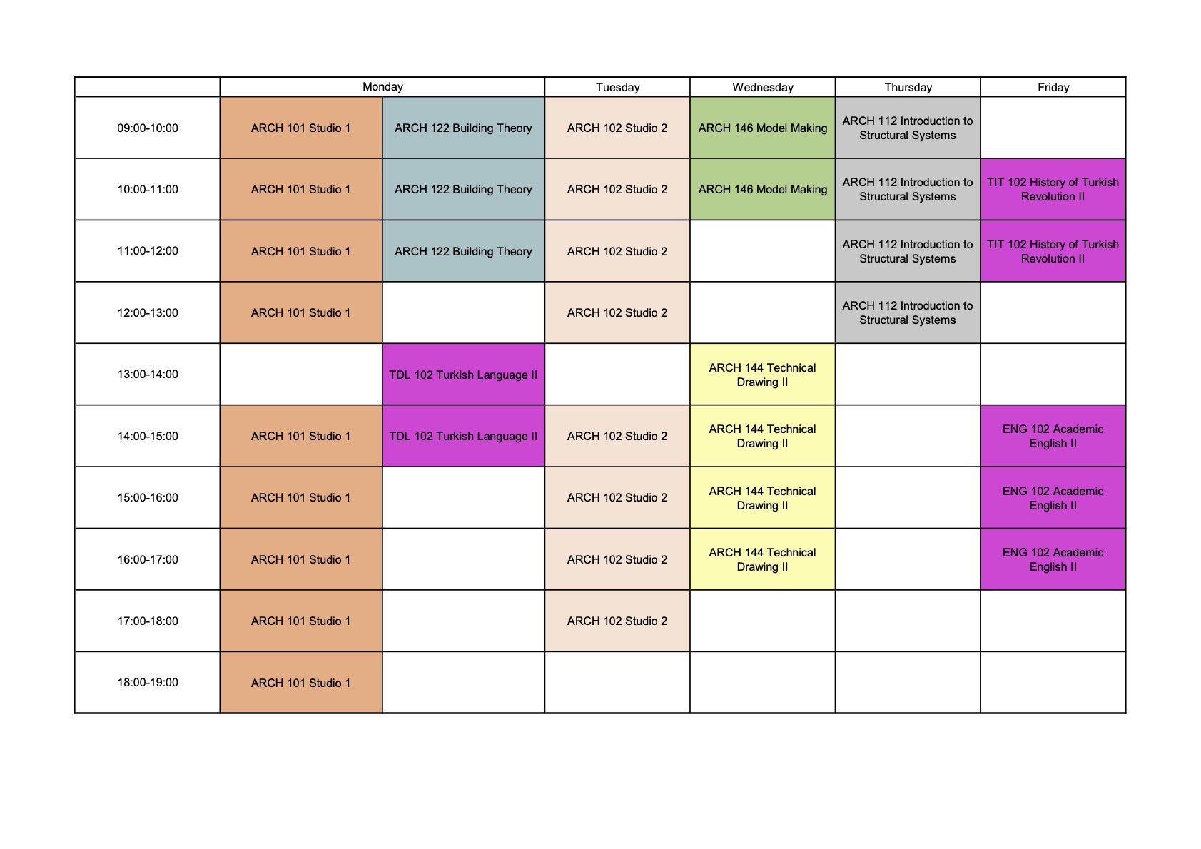 23-24 Bahar Döneminde ARCH 101 Studio 1 Dersini Alacak Öğrenciler ekle-bırak haftası boyunca dersi OBS üzerinden alabilirler. Dersin yapılacağı sınıf L216’dır. İlgili ders programı aşağıda verilmektedir.
